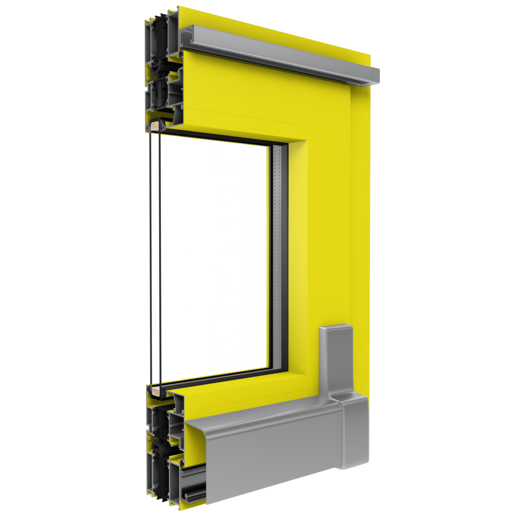Dreikammerprofile mit folgenden Einbautiefen: 70 mm (Rahmen), 79 mm (Flügel) mit thermischer Trennung aus dem mit Glasfaser verstärkten Polyamid. MB-70 HI: erhöhte Wärmeisolierung (HI) dank Einsatz von speziellen Isolierungseinlagen innerhalb der Profile und im Zwischenscheibenraum.