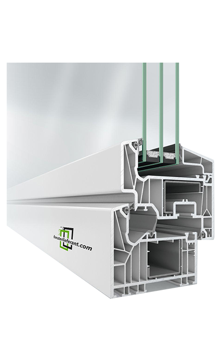 Energiesparendes 82 mm Fenster mit Mitteldichtung für maximale Dämmung und Sicherheit.