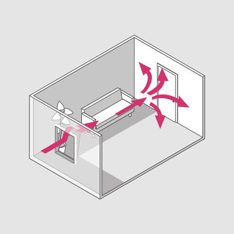 Durch das gleichzeitige Öffnen aller Fenster und Türen entsteht ein Durchzug, der die Luft in Ihren Wohnräumen in nur zwei bis vier Minuten gänzlich erneuert. In dieser Zeit kühlen die Bauteile nicht aus. Eine effektive Art der Belüftung, die Energieverluste minimiert und Heizkosten spart.